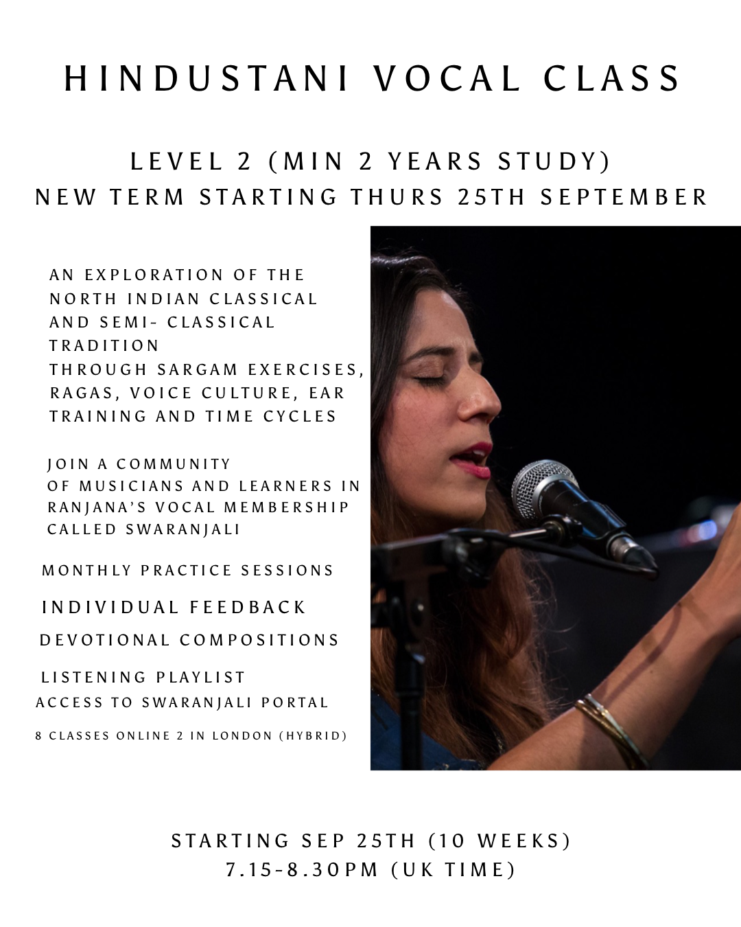 The new term is 10 weeks, with the advantage of free access to interviews/guided listening sessions and much more through joining Swaranjali.